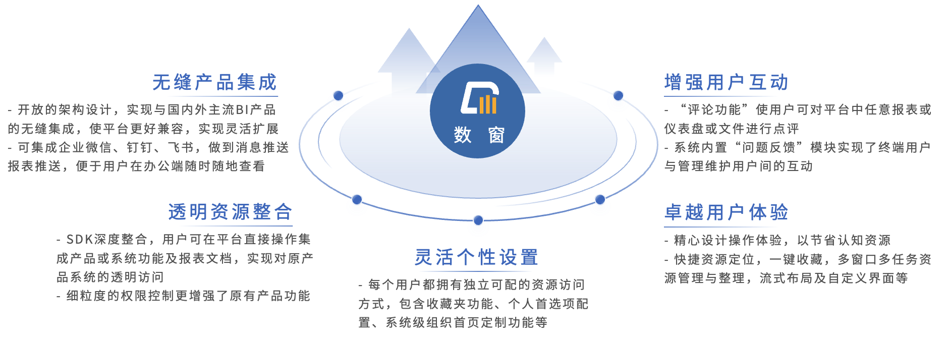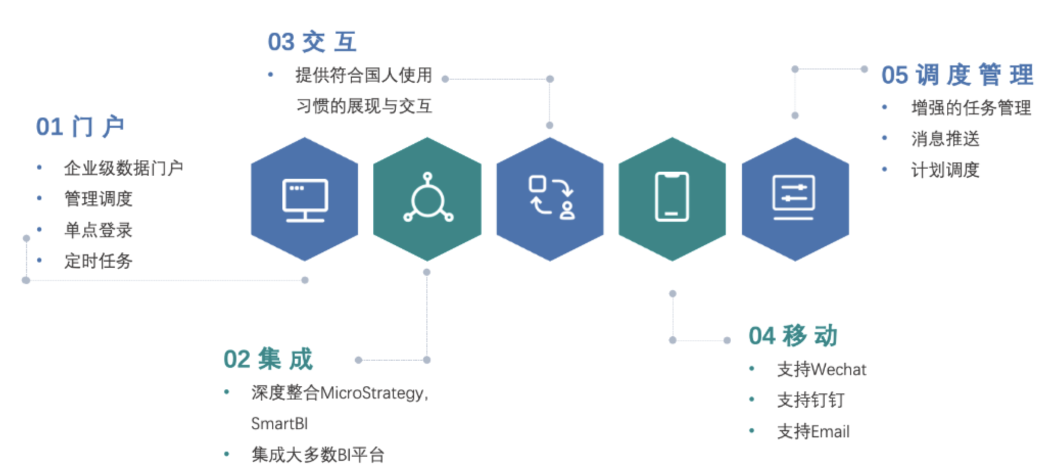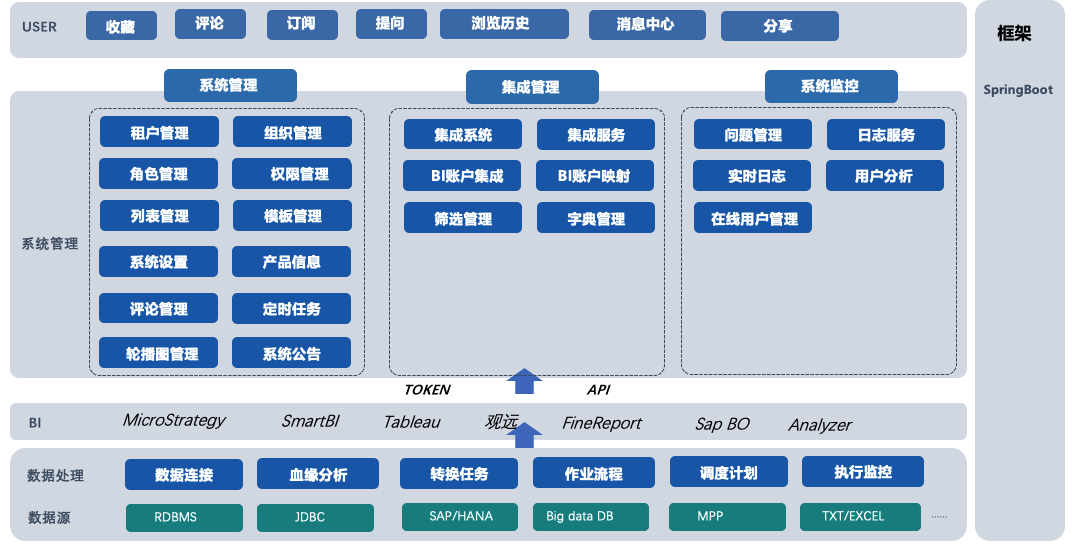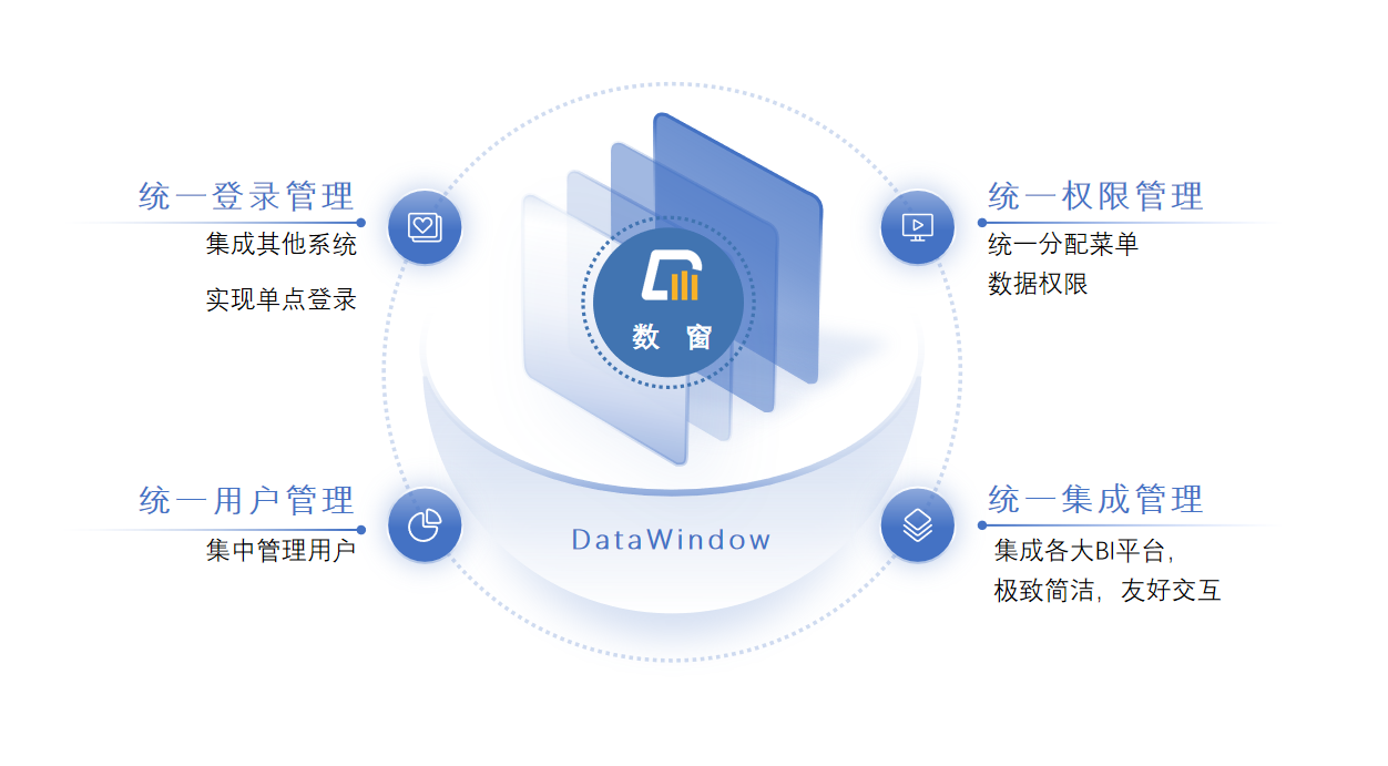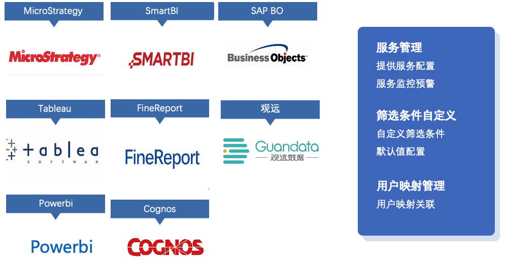 集成市场上国内外主流数据应用产品,通过平台的集成模块与统一身份认证功能,可以使终端用户拥有一致性的体验,使得管理员有一站式的管理平台,对各产品的功能做了扩展,提高了产品的易用性和使用效率