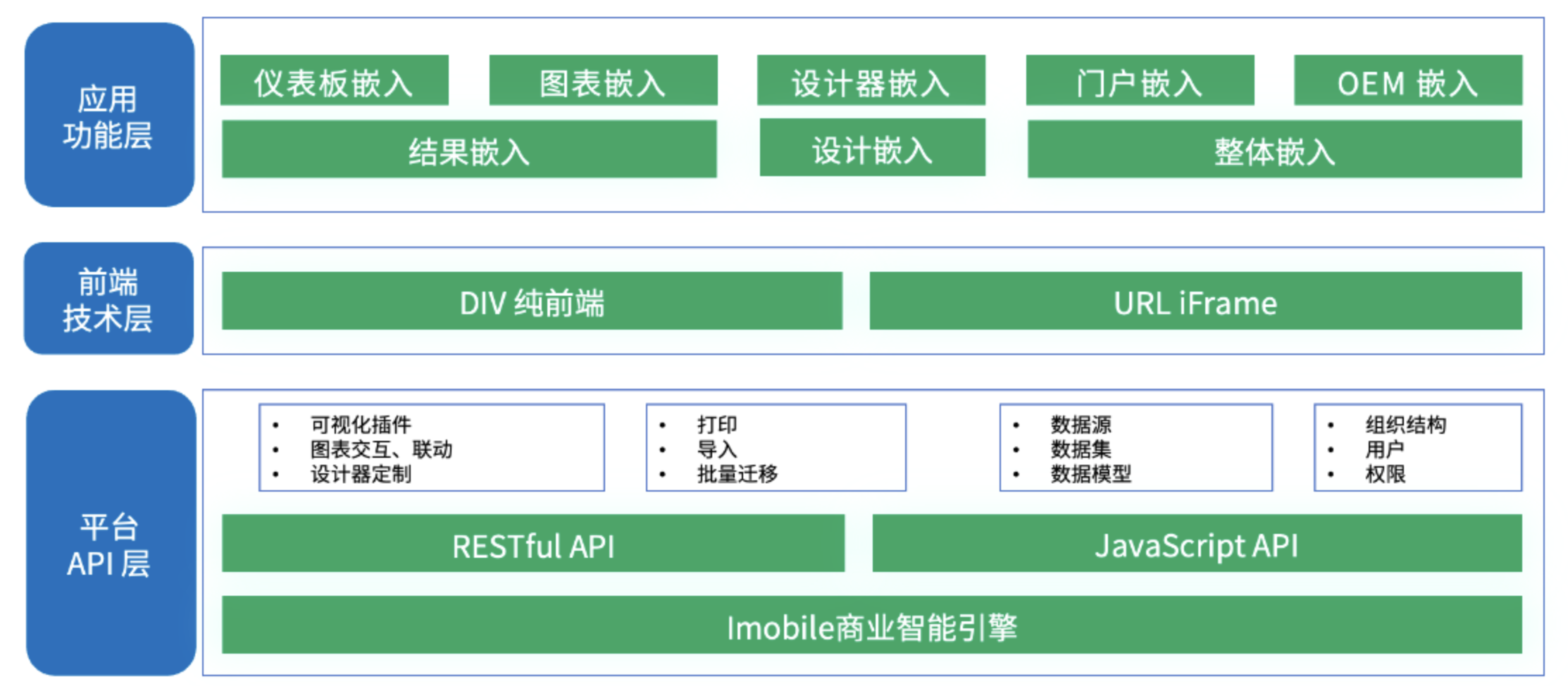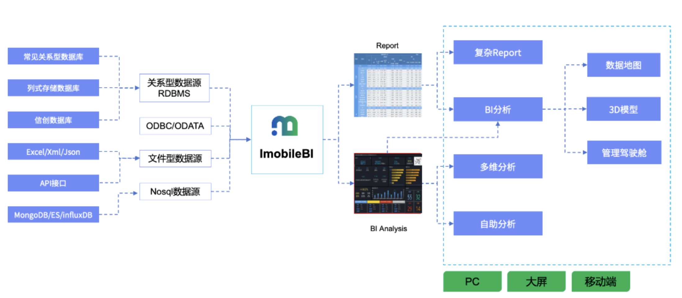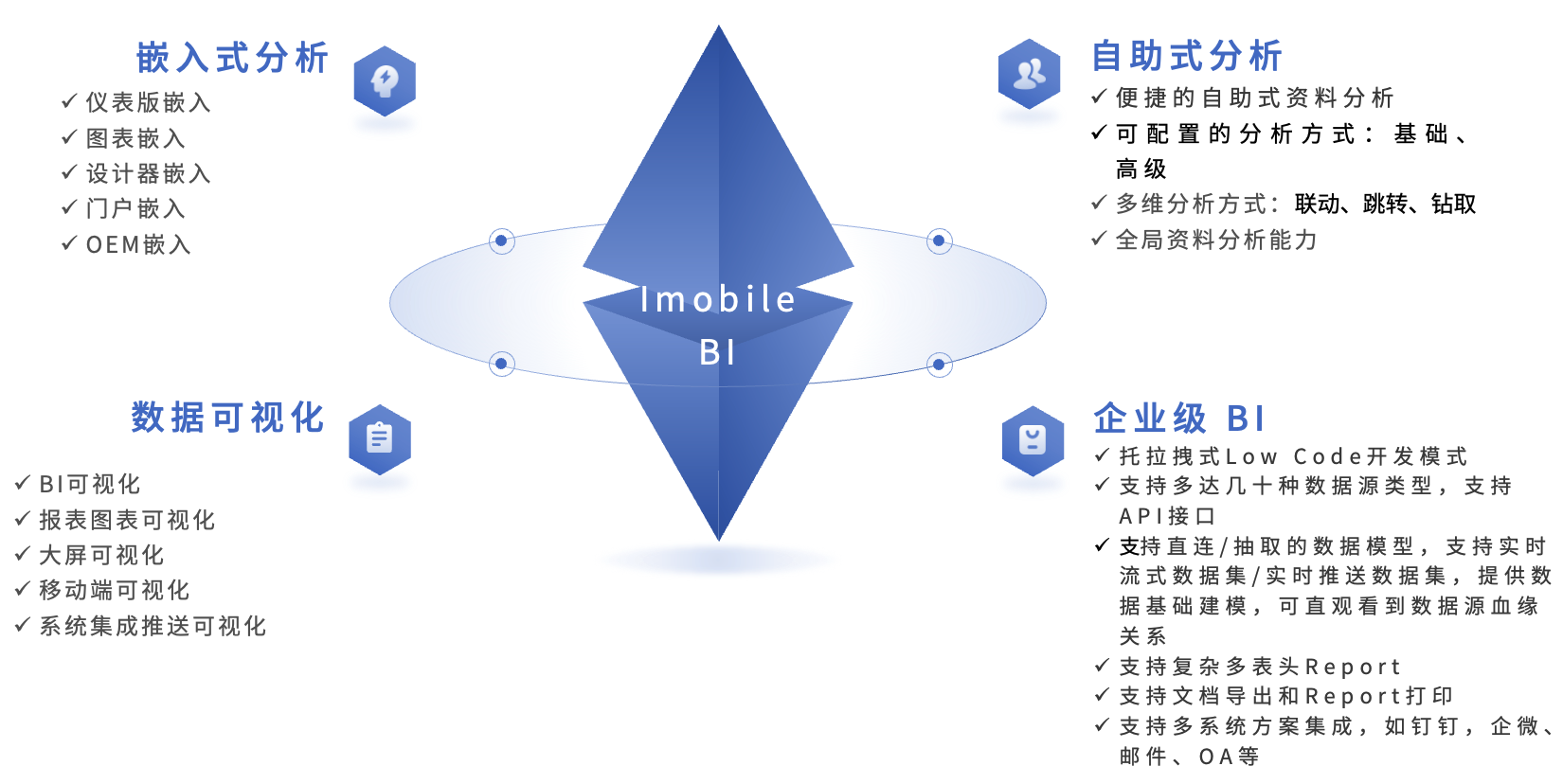 摩柏BI产品整体架构基于企业级应用设计,提供数据分析平台的全部功能,全面支持平台、数据库的国产化,提供单机部署、分布式部署、K8s部署多种灵活的部署方式,满足企业级高并发、大数据量分析的需要
