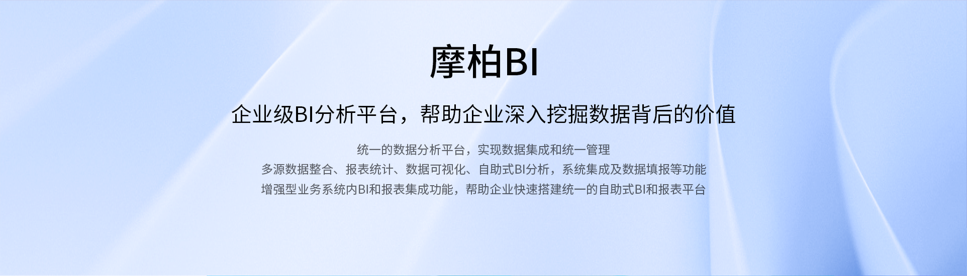 摩柏BI能够快速的将 BI 和报表功能以白标的方式集成到现有业务应用程序、产品、网站和门户中,为用户带来更丰富的数据见解,帮助用户在处理业务时进行即时分析,做出更有力的决策并更快的采取行动