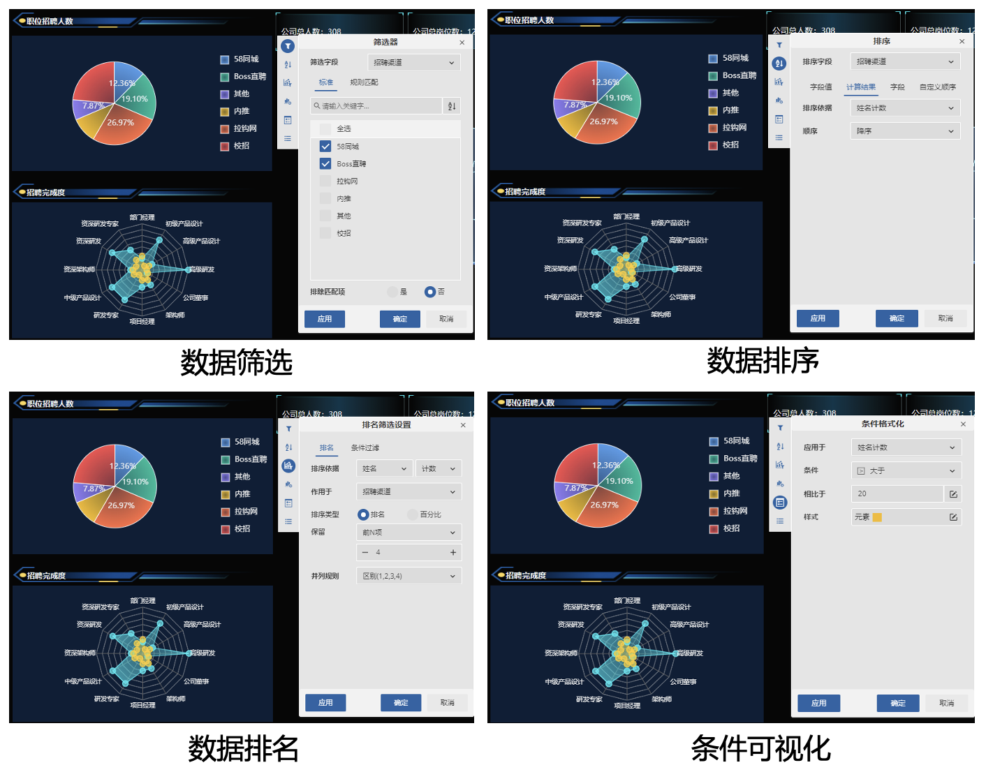 摩柏BI在设计器中提供了大量函数,支持复杂字段的计算同时支持在计算公式中引用参数和用户、组织上下文,以及报表自身的一些属性、报表元素的引用,极大的满足了用户多个场景的统计和展示需求
