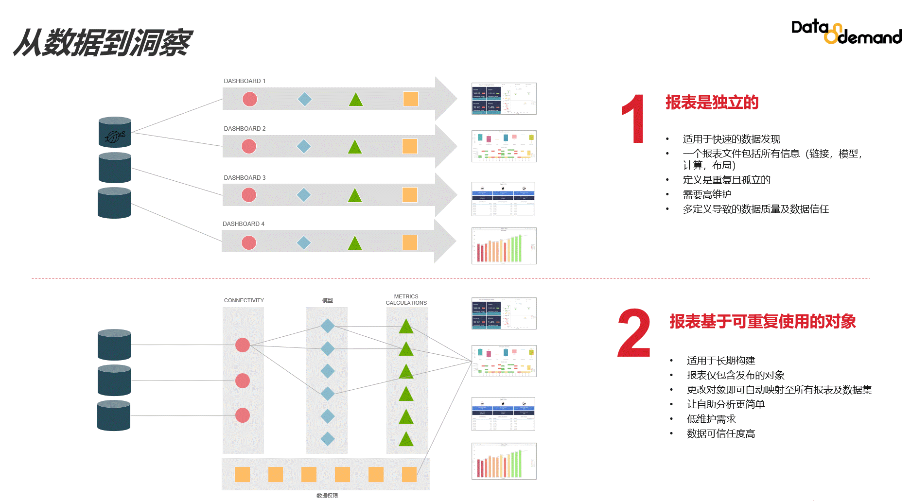 ü如果是部门内的、单主题的、或者需求变化非常频繁,常常需要快速做一些数据分析,或者IT资源相对紧张,可以选择比较敏捷的、没有语义层的方式来满足分析需求。