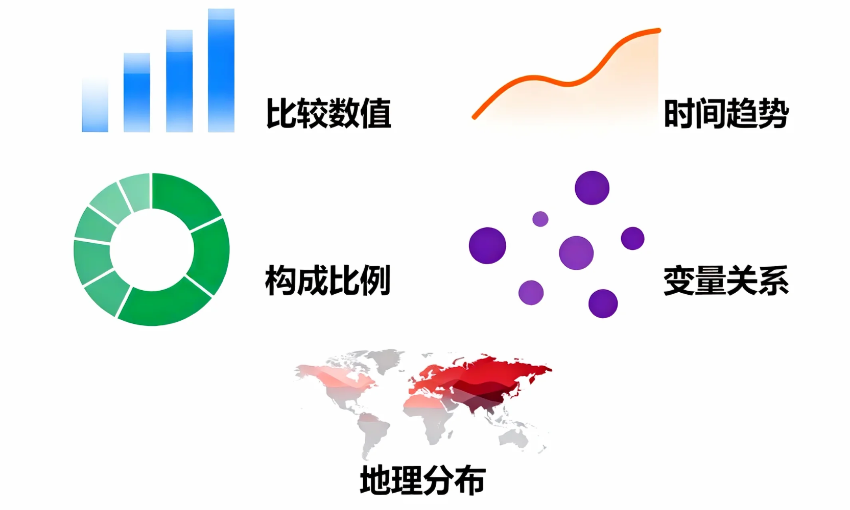 并非所有数据都适合用折线图或饼图呈现。错误的图表类型会扭曲信息,甚至误导决策。基本原则是: