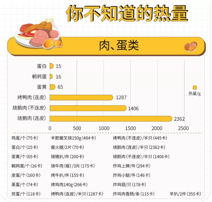鸡、鱼、虾、蟹...各种高蛋白、高脂肪的菜肴,奏响了长胖的主旋律,总觉得各种食物只有下肚才是幸福的,但吃货们要注意了,吃胖一时爽,减肥实在忙。吃货们,你们知道到底这些食物中蕴藏着多少热量吗?