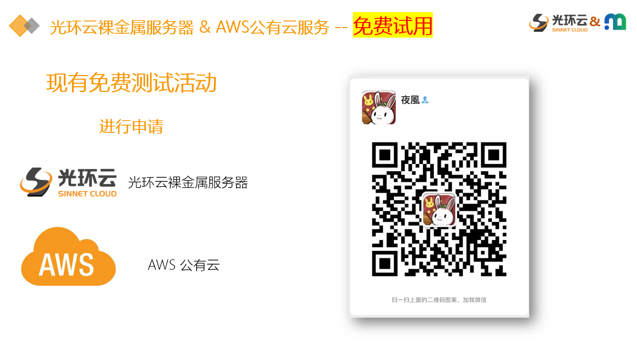 如果您需要试用光环云网裸金属服务或AWS公有云服务,可扫描如下微信二维码向工作人员申请。