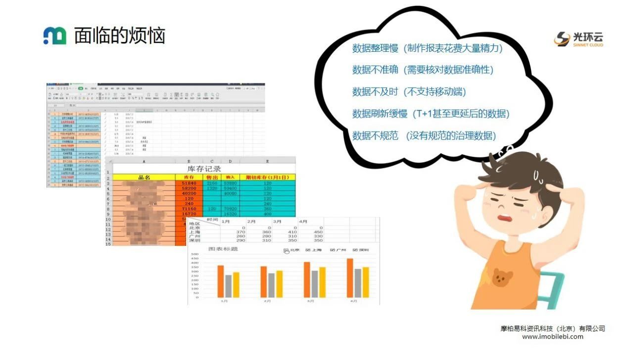 信息化时代,企业在发展过程中产生大量的数据,而这些数据来自于不同的业务系统,数据口径不一,需要花费大量的时间进行数据汇总,数据处理。企业面临数据量大,易出错,数据延后,数据查阅受限及响应速度慢等痛点,而商业环境瞬息万变,业务管理决策的快慢将对企业的运营起着极为重要的影响,所以如何快速的收集各个系统内的数据,如何将企业内部的数据转化成有用的信息,帮助企业管理者做出更快、更好、更合理的决策,变得非常重要而急迫。