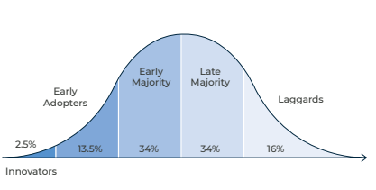 当您从提高意识转向执行计划时,让关键的支持者、创新者和早期大众加入进来,他们将激励实地的变革。领导层和 IT 团队需要您积极参与,同时任命热情的支持者。如果您已经在这个团队中取得了动力,请调整并专注于在早期大众。管理早期大众的秘诀是分而治之,从一小部分人开始,您可以更容易地影响他们成为社会领袖并提供价值。早期大众是高度关注生产力的群体,可能需要专门的沟通策略来了解分析如何帮助他们。一旦您在这个群体中取得了成功并有一些影响力后,就转向晚期大众和落后者。此时您的管理方法将从定制解决方案转变为批量销售,这可能还需要改变您的沟通和支持策略。最终分析的民主化将促使公司重塑,推动公司文化变革,获得经济利益。