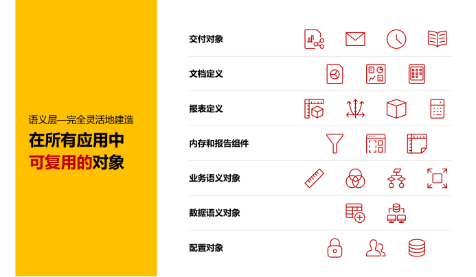 语义层是指在BI平台中搭建一个模型层,把数据仓库的数据映射成统一的业务术语,为企业级数据分析创建统一的逻辑数据模型。主要包括统一的维度(比如时间、客户、产品、组织),统一的指标(比如销售、收入、达成率%),同时一些衍生指标,比如同比、环比、月累计、年累计也可以在语义层维护。