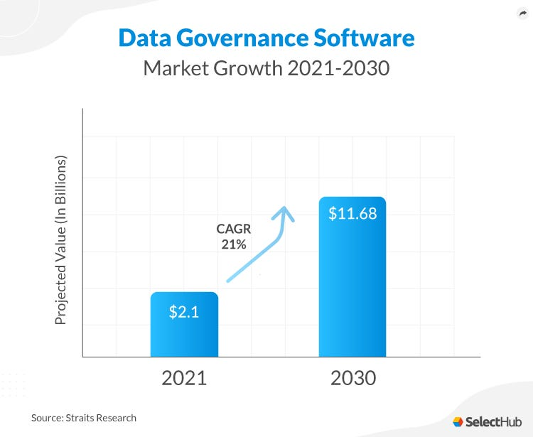据Straits Research预测,到2030年,全球数据治理软件的市场总值预计将达到1168亿美元。
