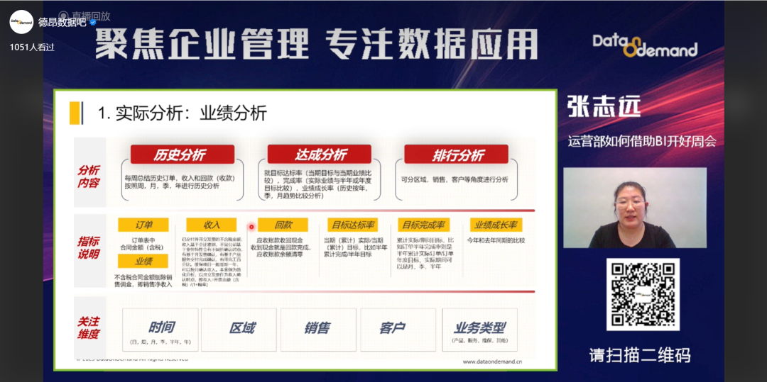 需求分析师张志远结合德昂周会的实例详细地介绍了运营部门如何借助BI开好周会,传统周会耗时且沟通成本高融入BI后的周会随时收集数据,周会汇报时只需点击执行按钮,还介绍了制作流程和案例DEMO。