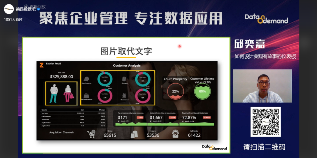 德昂产品经理Kevin介绍了数据分析设计的SOP,展示了很多酷炫的大屏场景,随后介绍了如何选择对的可视化图表,怎么让图表更好理解,怎样让故事更打动人心和一些画面制作小技巧。