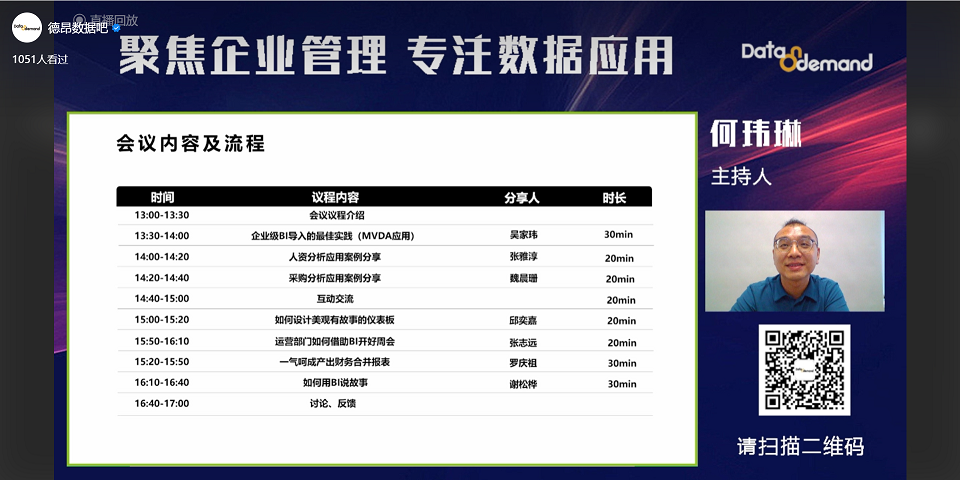 6月28日,德昂公司各位经验丰富的产品经理、项目经理化身为主播来分享不同行业的真实成功案例和最佳实践方法,分享的主题横跨人资、采购、运营主题及报表制作技巧。德昂还邀请了合作伙伴倍力资讯副总经理罗庆祖及BI行业经验20年+的资深顾问小P老师,一同分享财务合并报表解决方案,以及如何借助BI的分析思路,透过数据说出一段段引人入胜的故事。