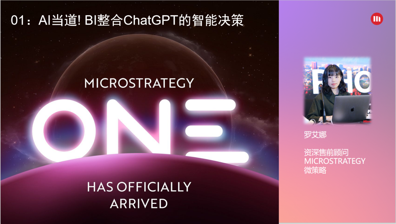 MSTR原厂顾问Aina跟我们分享了AI是如何改变商业决策的。她谈到了真实世界中企业如何使用BI工具结合ChatGPT进行决策分析,并提供了一些实际的技巧和策略,帮助企业描绘出数据驱动的商业愿景。