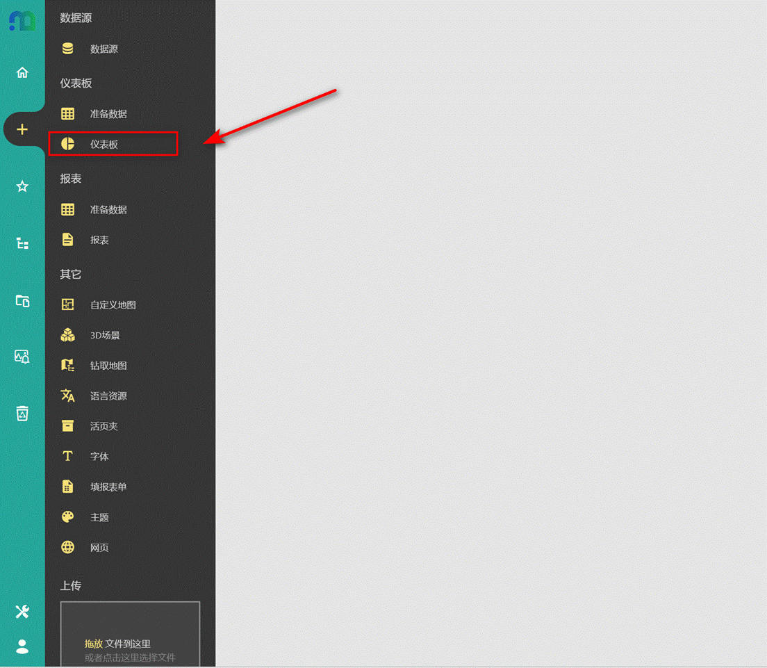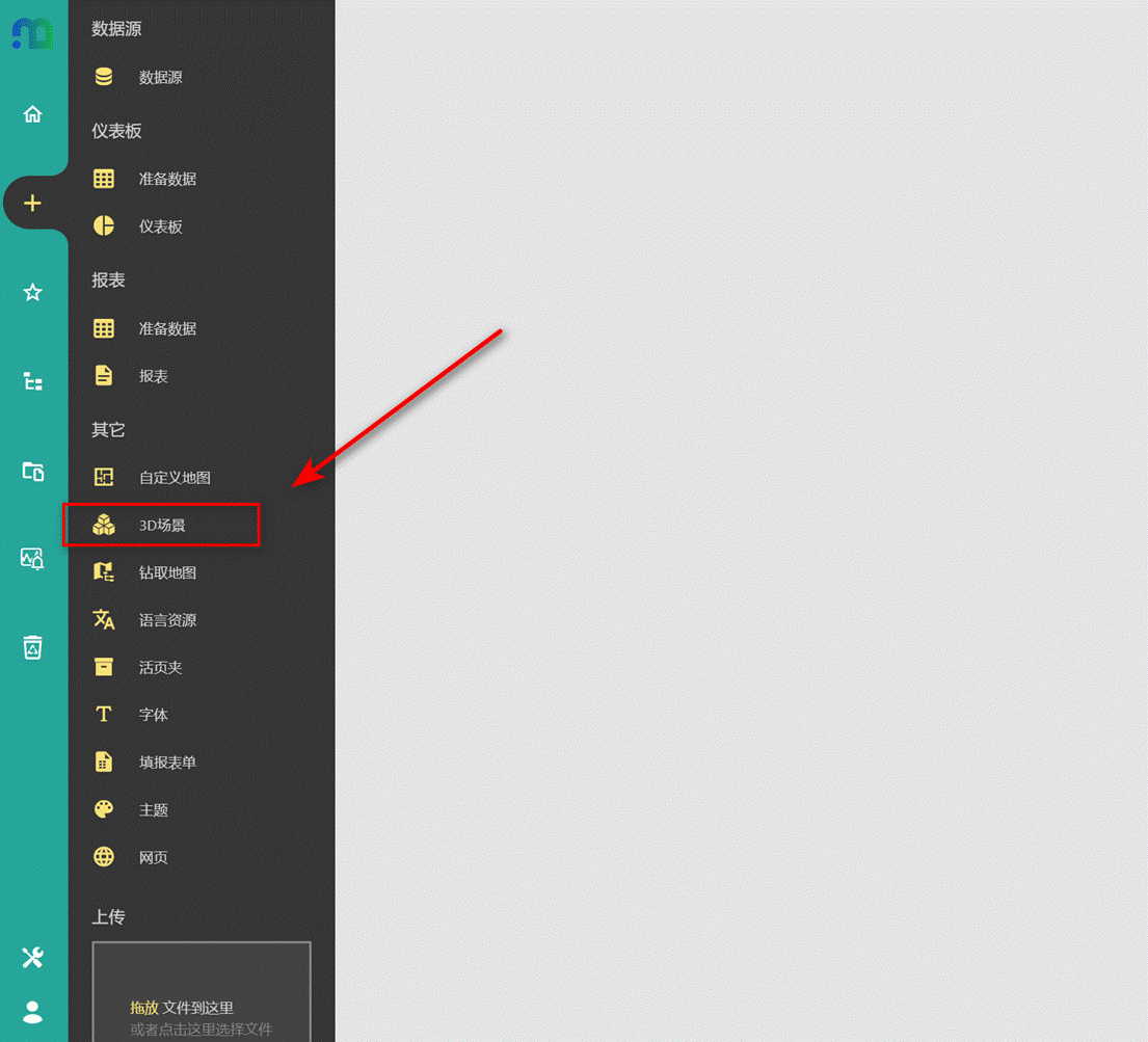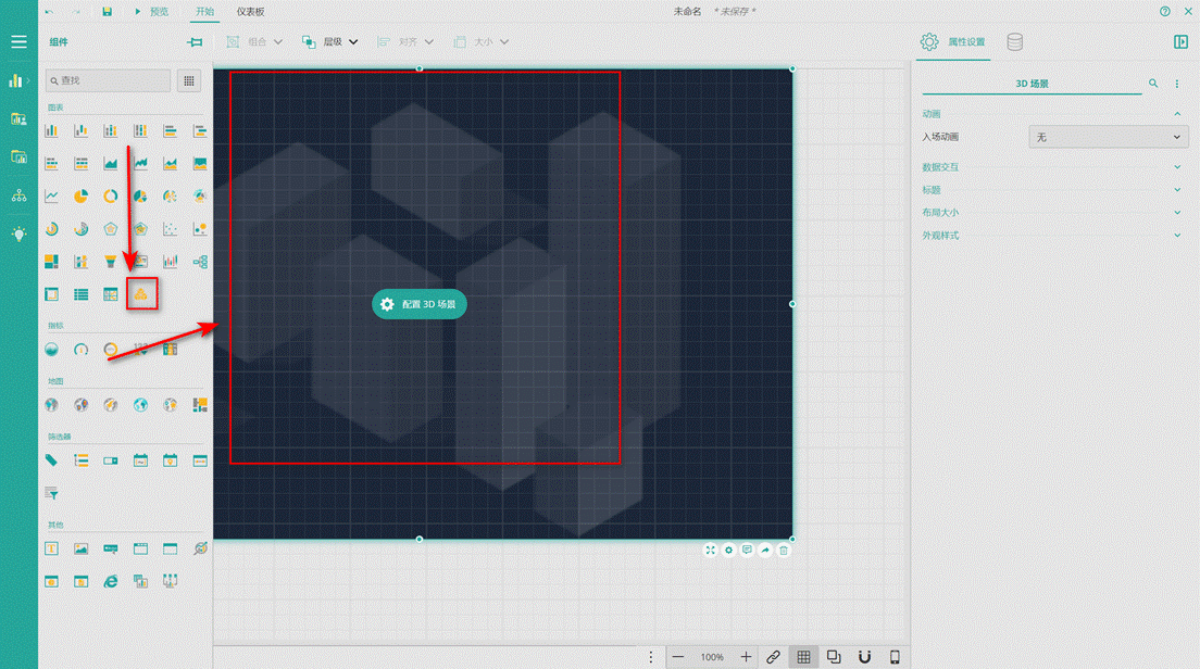 从仪表板设计器左侧的组件库中添加【3D场景】组件。
