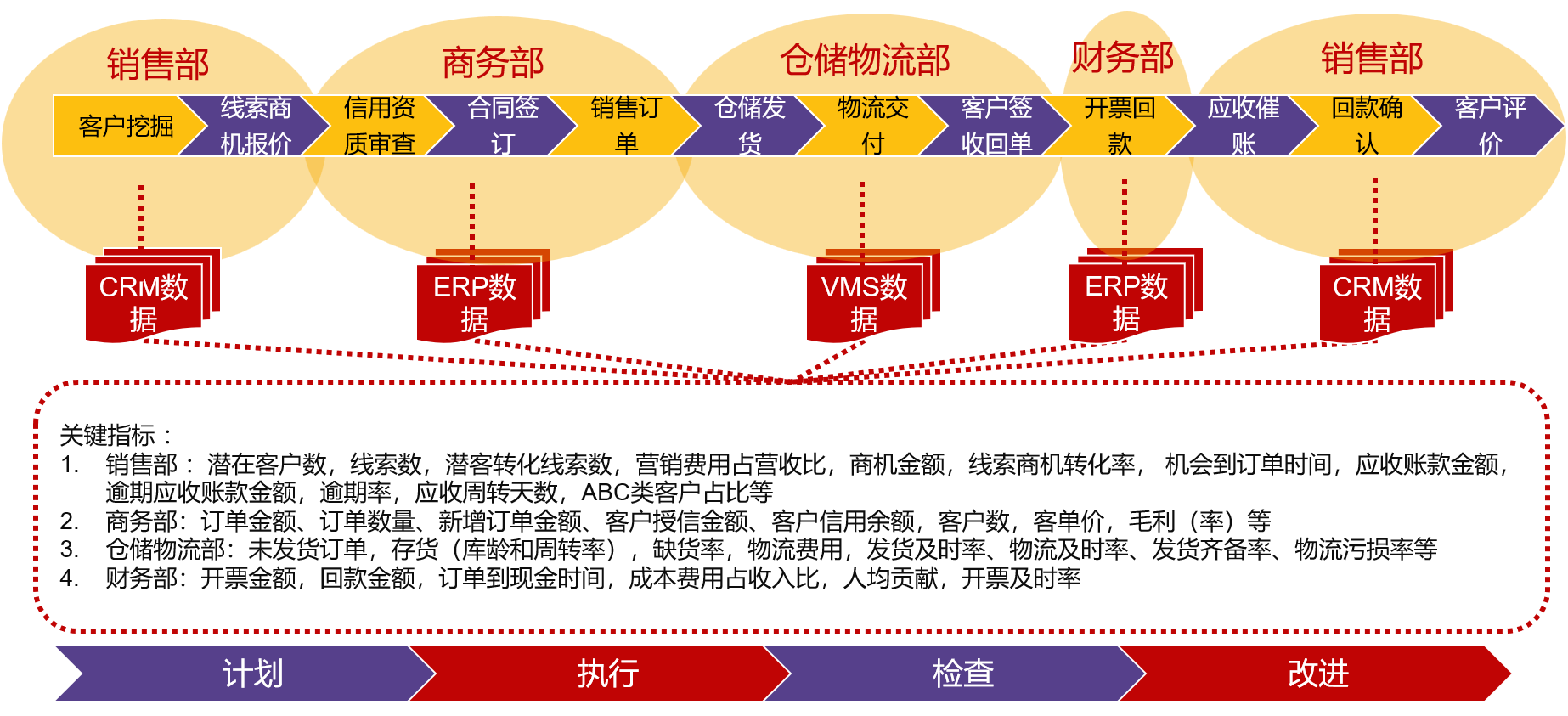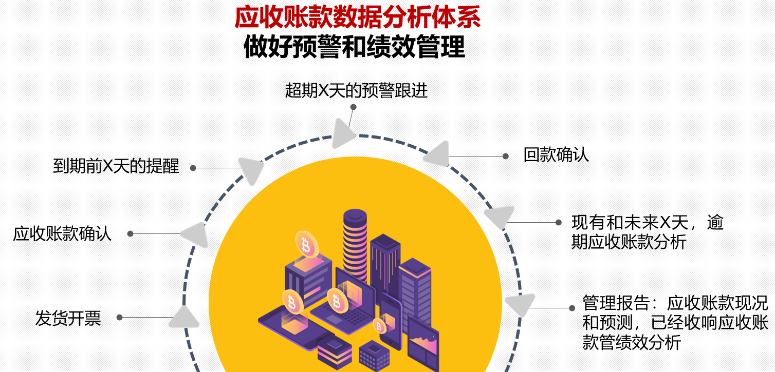 应收账款的管理要基于事前/事中/事后全面闭环管理理念、结合各部门业务流程进行分工合作,最后借助BI可视化数据分析工具,搭建起一套应收账款分析体系。