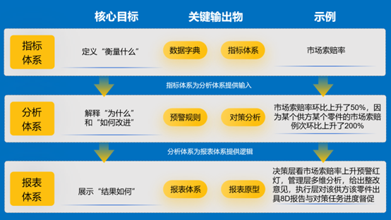 为了满足对质量管理实际业务模块的管理和数据分析需求,需要搭建质量管理者驾驶舱、重大质量问题监控、全域质量管理、质量信息推送、质量改进任务监控和质量月度考评内容。