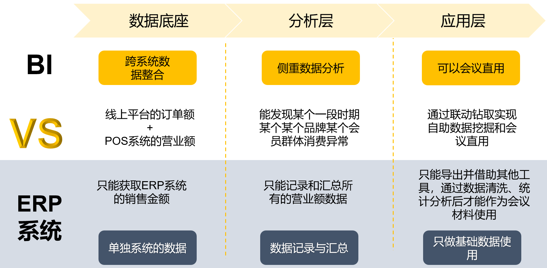 近期遇到一个连锁超市集团ERP转型与中台BI联合项目。ERP方案中说明了支持日常运营报表导出,例如出入库报表、库存报表、销售报表、应收应付报表、三大财报,同时支持客制化报表。因此集团董事长提问:为什么已经有ERP报表了还需要BI报表? BI平台存在的必要性是什么?