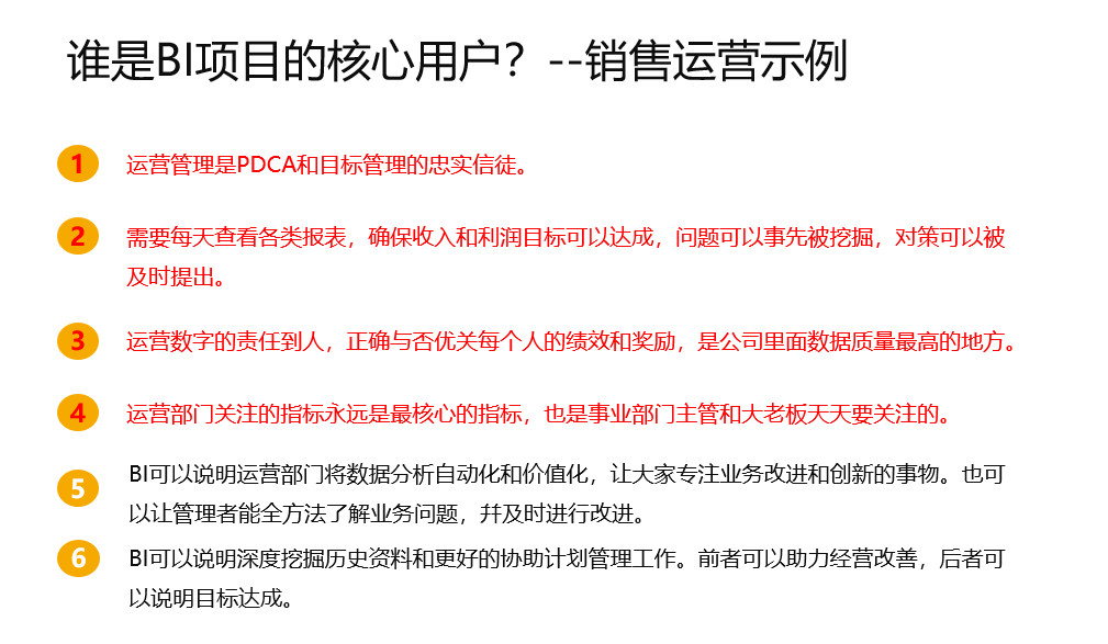 同时培养企业数字化应用氛围,找到BI应用场景,比如用BI平台进行会议沟通,取代EXCEL+PPT汇报;透过仪表盘分析找到业务改进的策略等。