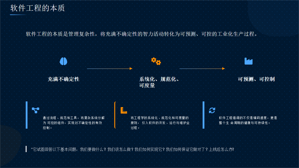 用工程思维替代手工作坊模式(可预测、可重复、可优化)