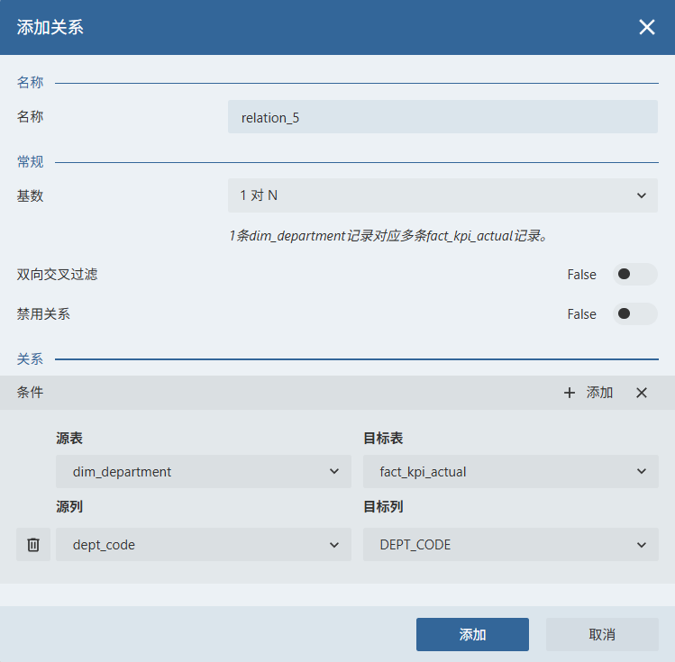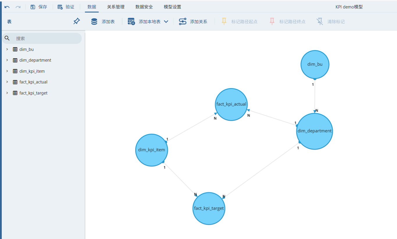 直观表关联:需要结合部门信息和KIP完成情况?只需将两张表拖入画布,鼠标轻轻一点,选择创建关联,选中关联字段即可,复杂的数据建模技术概念变得一目了然。