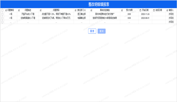 整改明细:通过整改待办填报的方式对整改内容、责任人、关闭日期等细节进行填写。