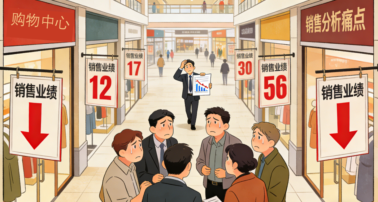 企业难以实时掌握各业态、各楼层、各品牌的销售表现。缺乏销售坪效、同比环比趋势、贡献度排名等深度分析,无法为调改、促销、租户辅导提供及时依据。