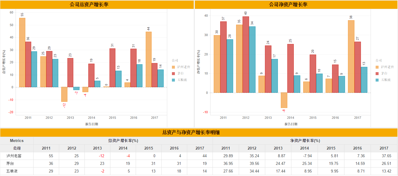 但是自2014年之后,白酒市场趋于稳定,盈利能力开始稳定上升,其中倾向于中低端市场的泸州老窖的资产增长迅猛。