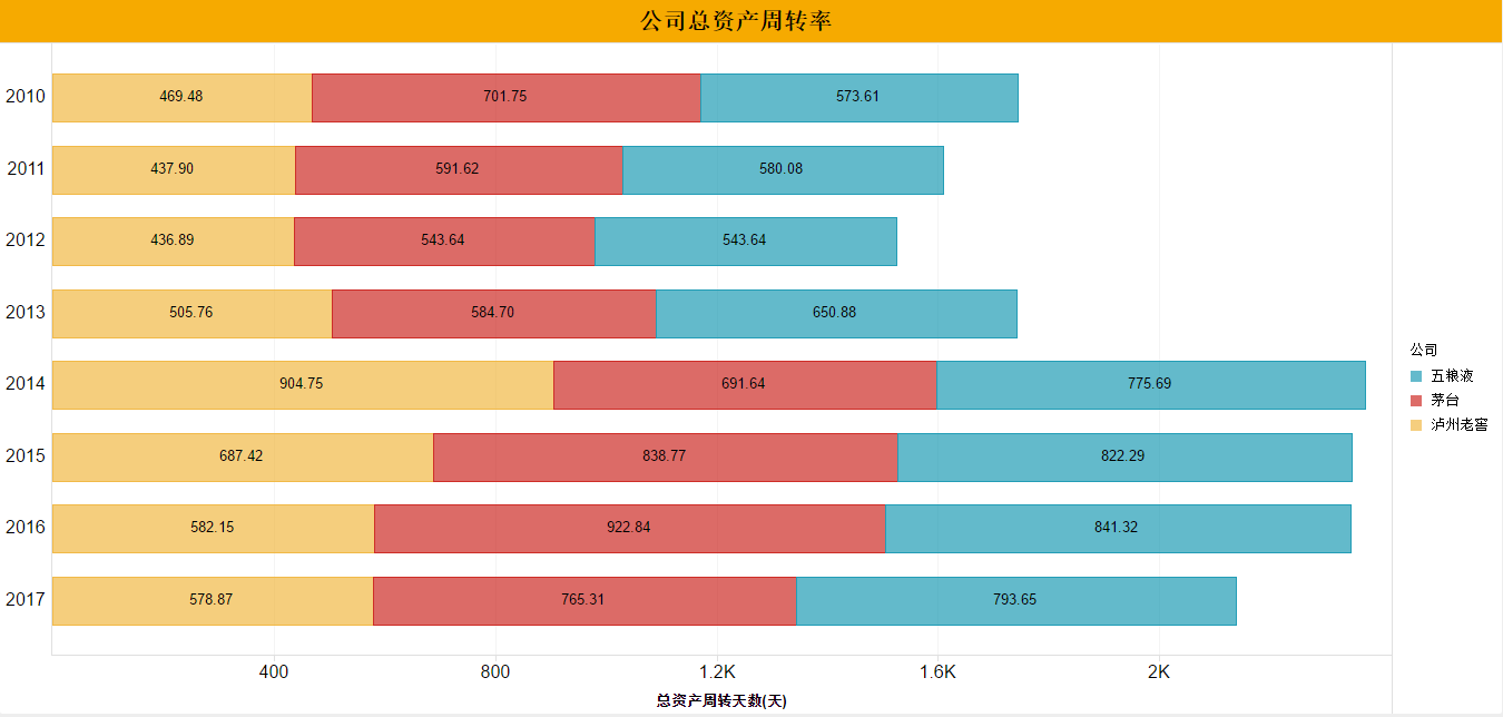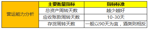 总体上来说,参照三个企业发现,酒行业资产周转偏高。泸州老窖在2014年总资产周转天数逐渐减少,并且存货周转情况一直偏低,说明泸州老窖在提高销售量的情况下,库存管理方面运营较好。