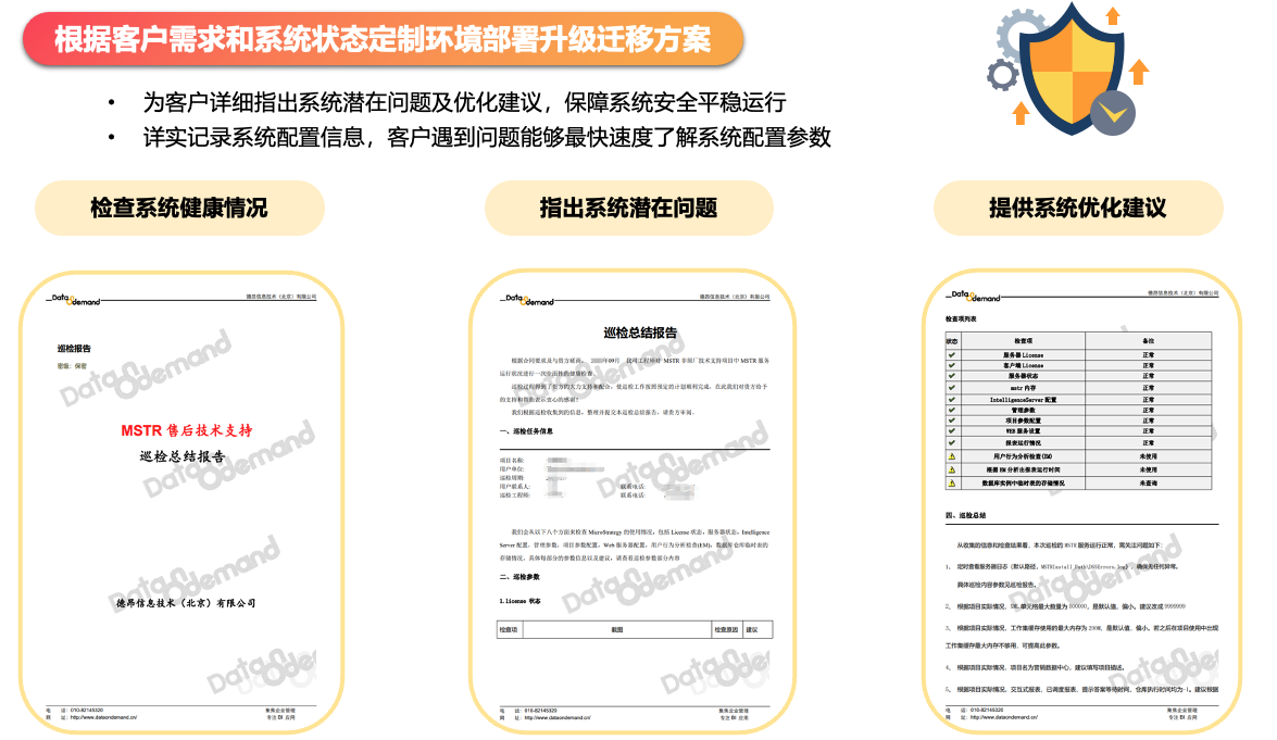 德昂根据客户所使用BI工具类型、功能使用情况等为每个用户定制专属巡检方案,保障环境稳定运行