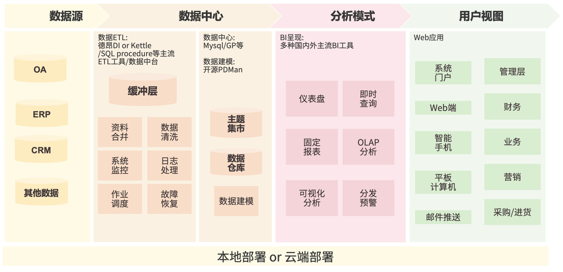 工具无边界,数据引领未来。团队拥有超强的实施能力,精通多种BI分析平台;同时熟练掌握主流的数据仓库、ETL、数据中台