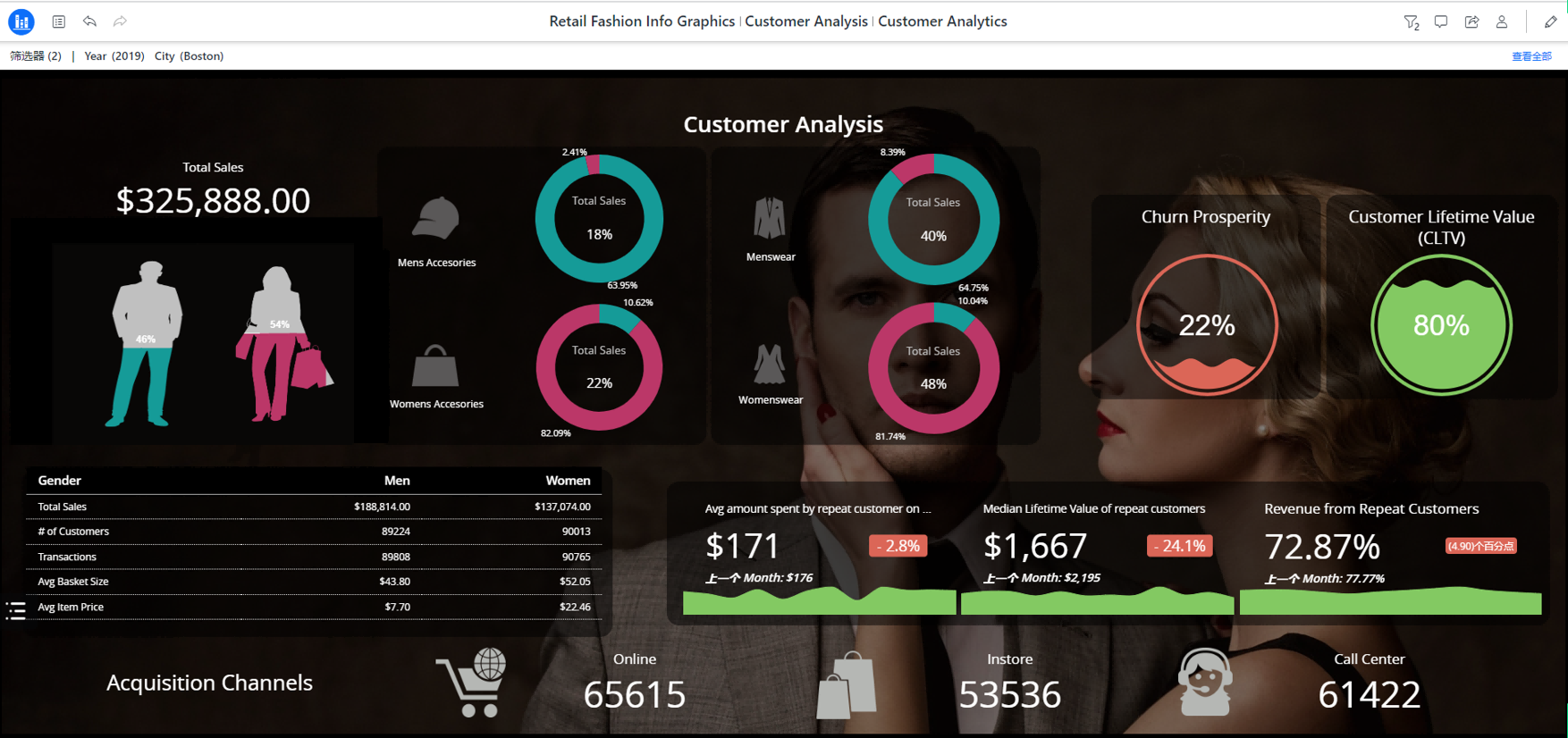 并通过分析模型、数据大屏和移动端,随时掌握业务全景,指导营销决策。